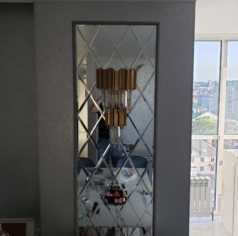 Использована серебристая зеркальная плитка "вытянутый ромб".